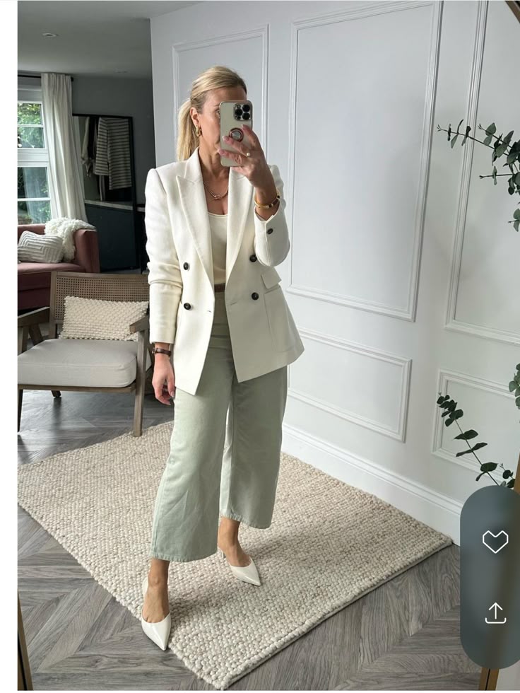 5. White Tee + Wide-Legged Trousers + Neutral Blazer.