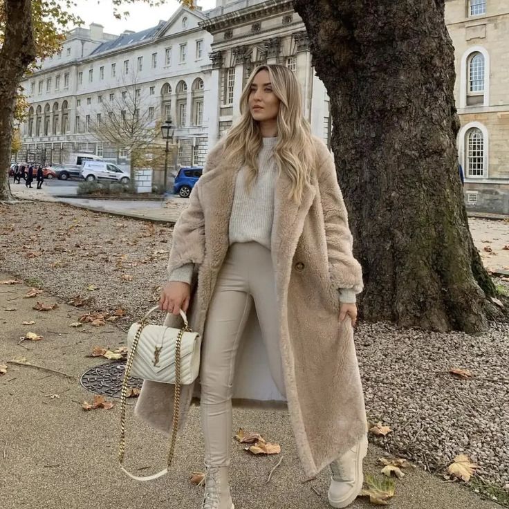 In addition to feeling like a cozy hug, a teddy coat looks adorable worn over a matching knit set. A comfortable monochrome base underneath a soft teddy jacket creates that effortlessly laid-back vibe, whether it’s a crop top and joggers or a ribbed two-piece with leggings. A beanie or tiny backpack adds a playful touch, and chunky sneakers provide a sporty balance to the ensemble.