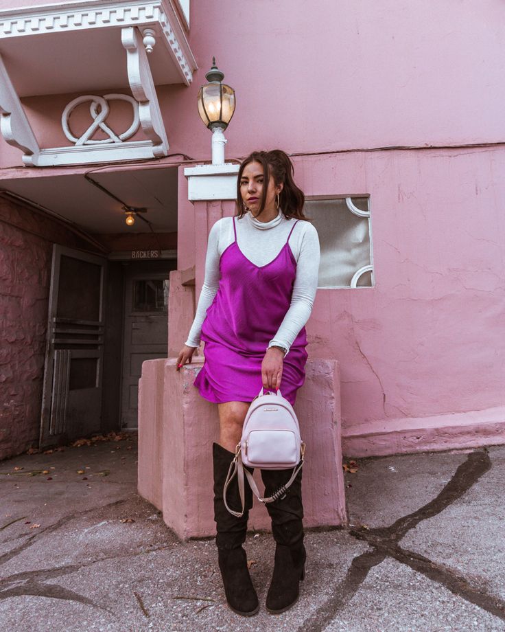 12. Turtleneck + Slip Dress + Knee-High Boots.